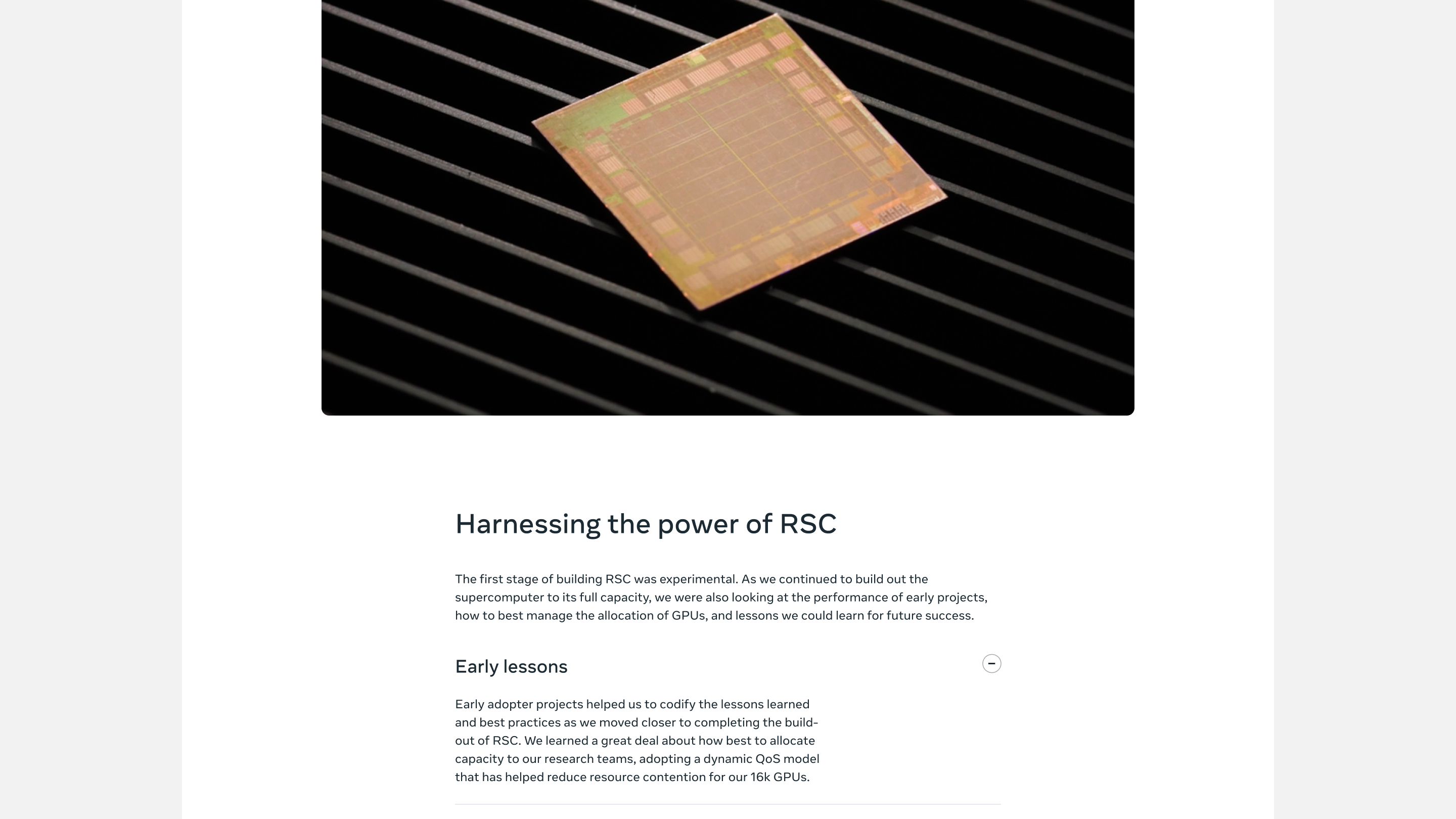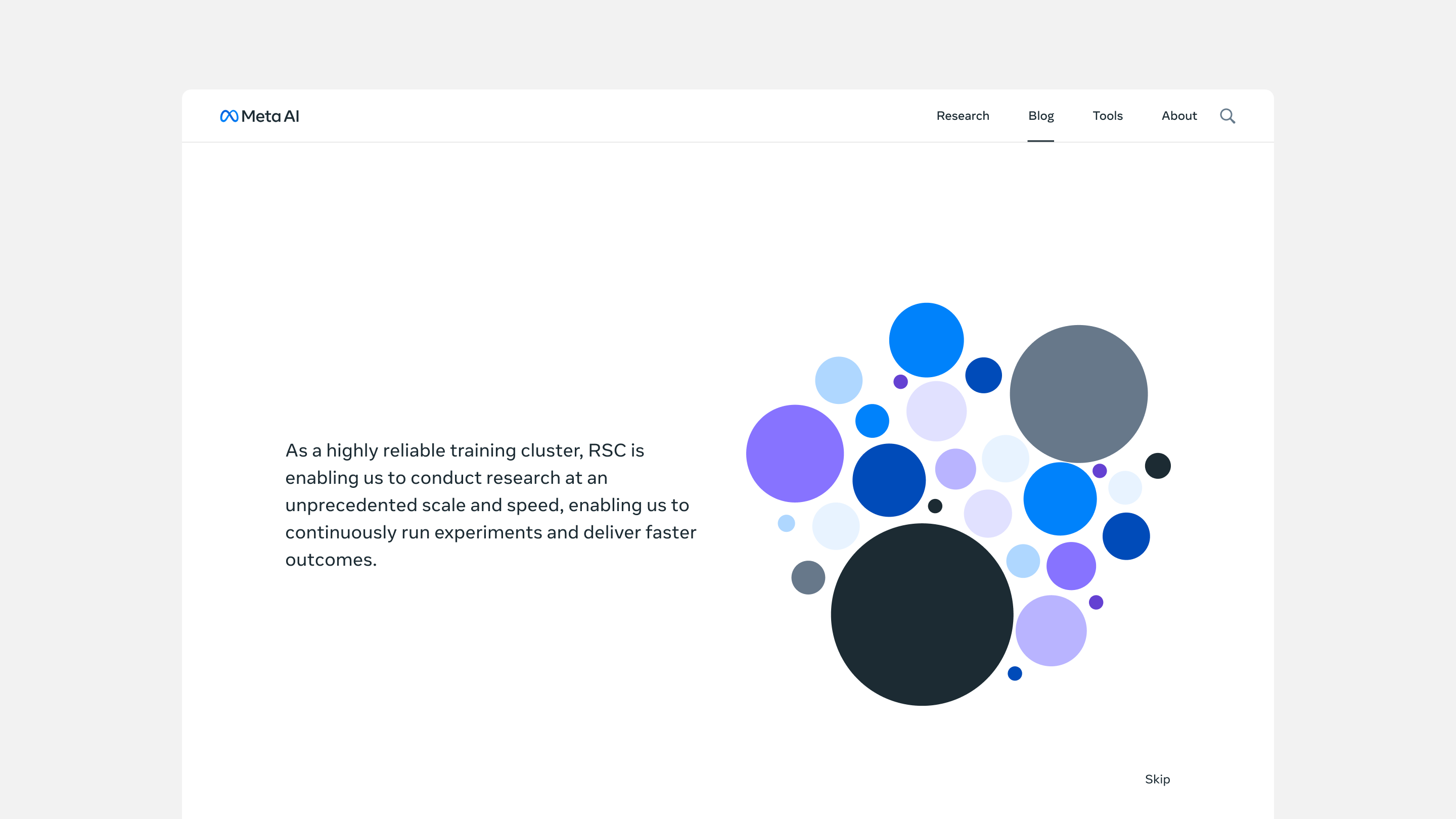 Main responsibility was conceptualizing designing, and building this immersive blog post to show our readers the scale of Meta’s research and the magnitude of its computing power. By way of narrative infographics and docu-style video, we educated our readership on how the Research SuperCluster will radically accelerate Meta’s efficiency in research training and broke down how the cluster will service Meta’s users at scale.
