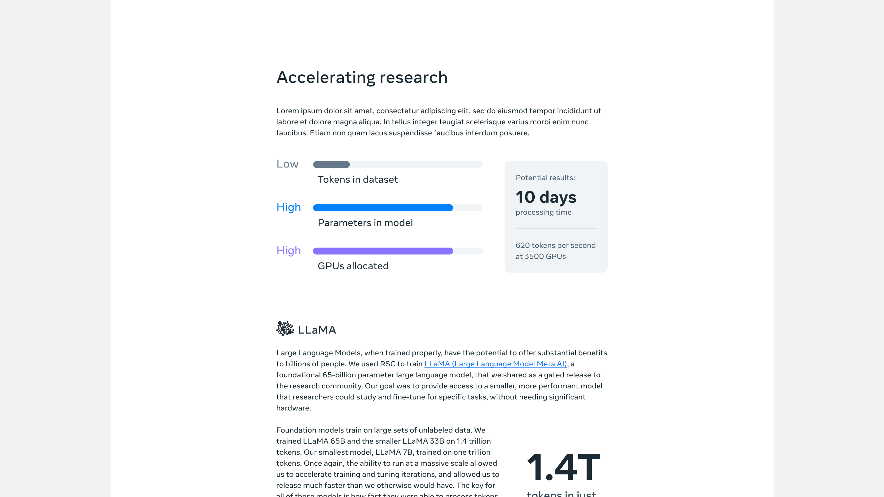 Meta has completed the second-phase buildout of its Research SuperCluster (RSC), an AI supercomputer with nearly 5 exaflops of computing power. This state-of-the-art infrastructure provides Meta with the stability, storage capacity, and privacy it needs to conduct research at an unprecedented scale and speed, thus accelerating AI model training and delivering faster outcomes.